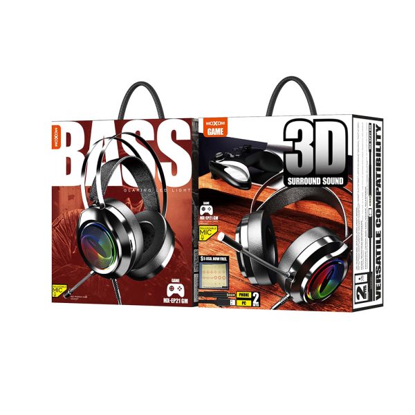 Los Audífonos Gamer Moxom EP21 cuentan con controladores de 50 mm que ofrecen un sonido claro y potente en un rango de frecuencia de 20 Hz a 20 kHz. Su impedancia de 32 Ω y sensibilidad de 102 ± 3 dB garantizan una experiencia auditiva precisa. El micrófono de 6 x 5 mm con sensibilidad de -38 ± 3 dB y directividad omnidireccional permite comunicaciones claras. Con un cable de 2,2 m y conexión USB más jack de 3,5 mm, ofrecen versatilidad y comodidad para largas sesiones de juego. Además, incluyen iluminación LED con bajo consumo para un estilo moderno.