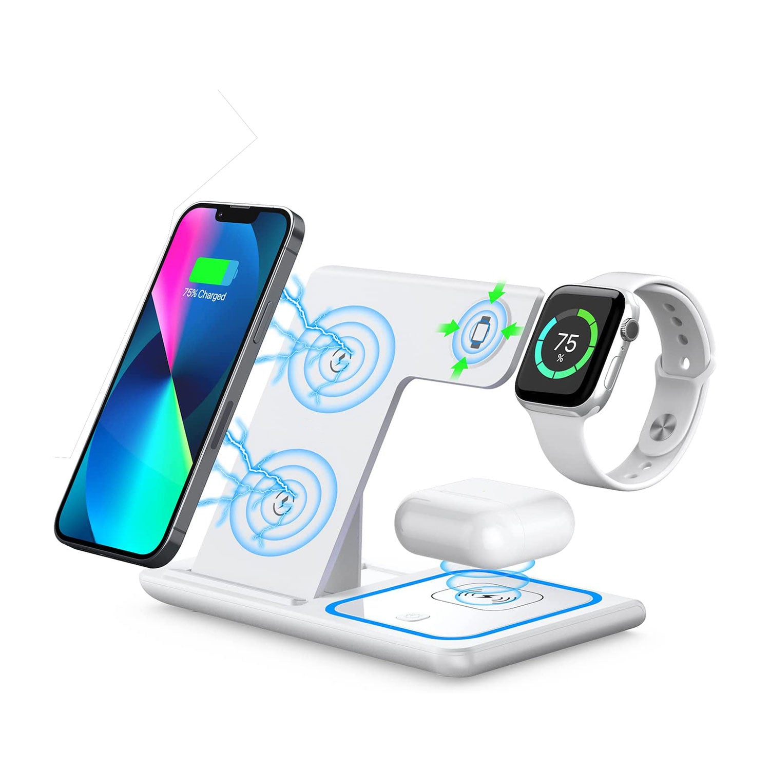 El cargador inalámbrico Moxom MX-ST11 ofrece una potencia total de 22 W, distribuyendo 15 W para smartphones, 3 W para relojes inteligentes y 5 W para auriculares. Su diseño en soporte vertical facilita la visualización durante la carga, mientras que su construcción en ABS de alta calidad garantiza durabilidad. Compatible con dispositivos Qi, incorpora protección contra sobrecarga y sobrecalentamiento para una carga segura y eficiente mediante interfaz USB tipo C. Ideal para quienes buscan rendimiento y seguridad en un cargador inalámbrico avanzado. Color Blanco,